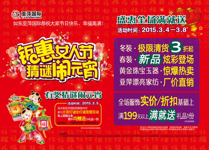 钜惠女人节 猜谜闹元宵 (活动时间:2015.3. 4—8)