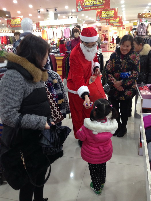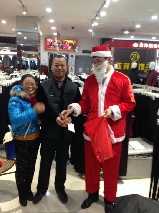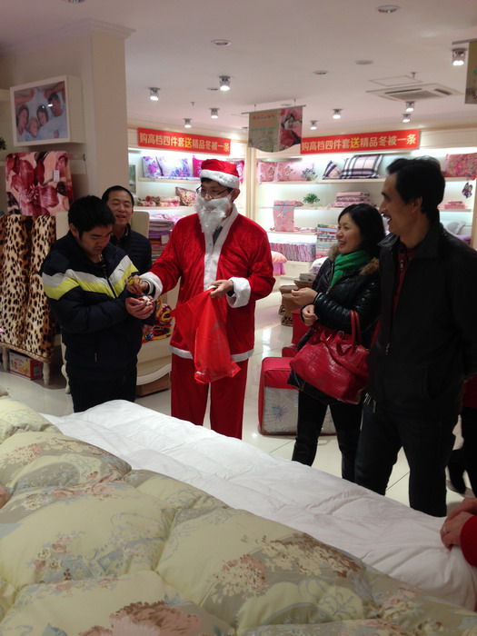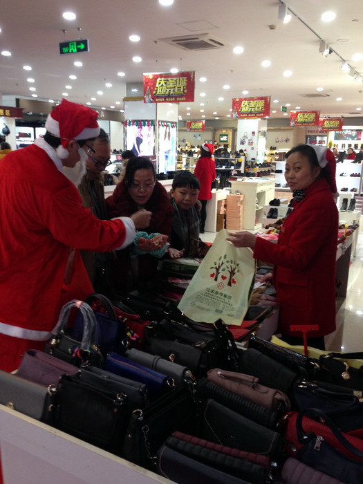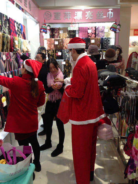 今天是圣诞节,南通亚萍国际自开业以来,陆亚萍董事长每年都精心准备精美的糖果给消费者品尝,虽然下着小雨,但是也挡不住顾客的购买热情,我们的营业员用热情、细心、周到的服务介绍好商品,服务好消费者,赢得了广大消费者的好评。