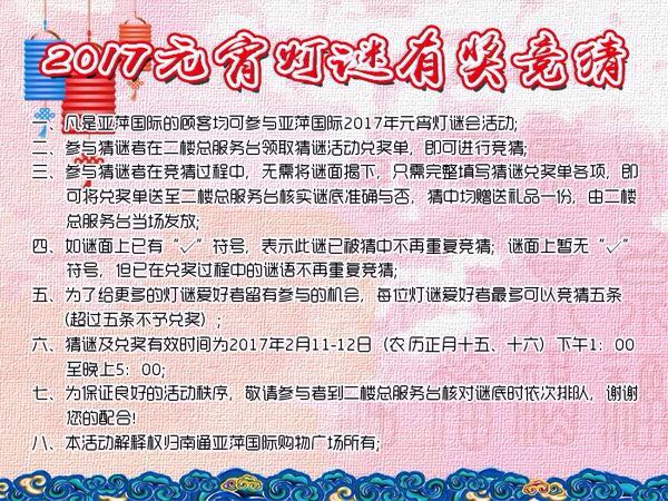 闹元宵猜灯谜南通亚萍国际欢迎您!