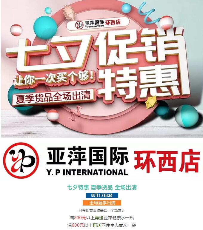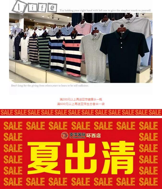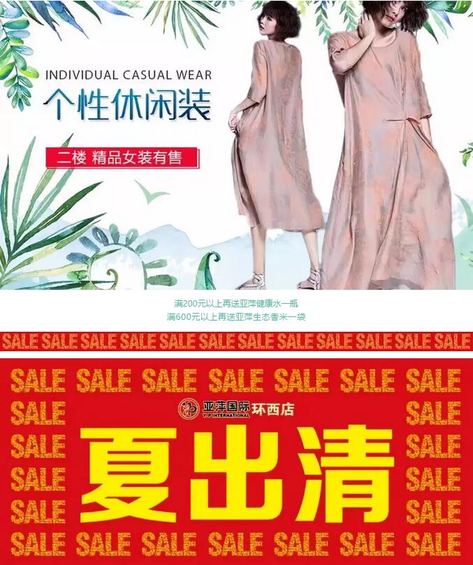 南通亚萍国际 七夕特惠 夏季货品 全场出清