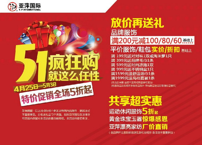 (各品牌折让惠购标准详见各柜台明示 各活动不重复参加)