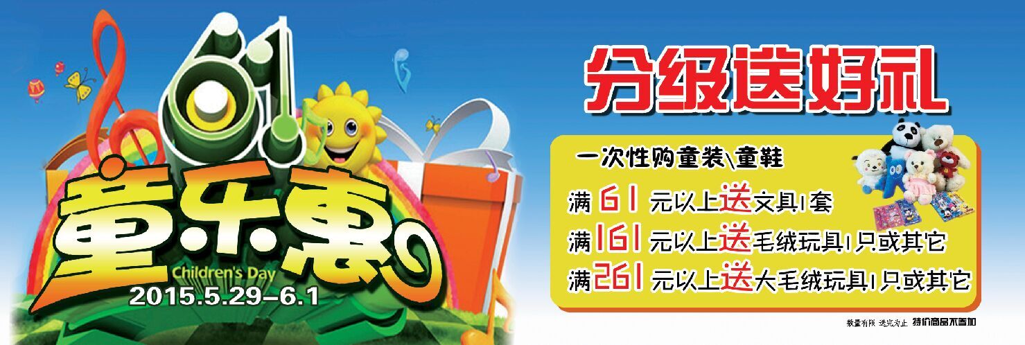 如东亚萍国际6.1童乐惠 活动时间:2015.5.29-6.1 活动内容:分级送好礼