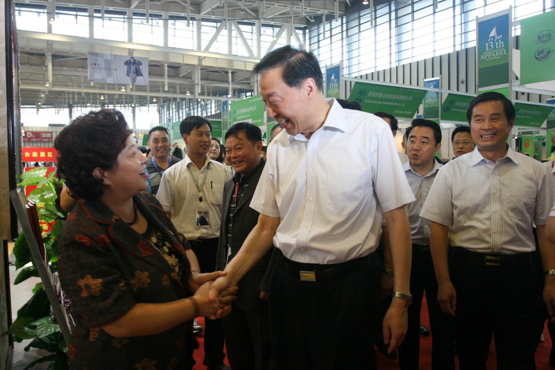 江苏亚萍集团参加第十二届中国江苏服装、家纺、面料博览会,参展期间省委书记罗志军参观亚萍展厅