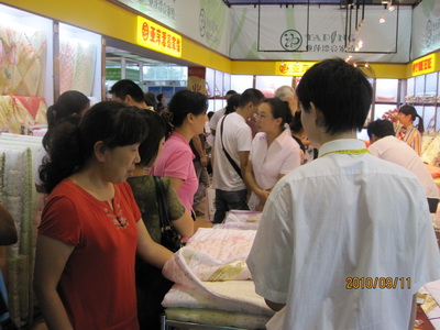 亚萍漂亮家纺的产品在博览会上受到广大来宾的追捧,展厅内人潮涌动、订货异常火爆。