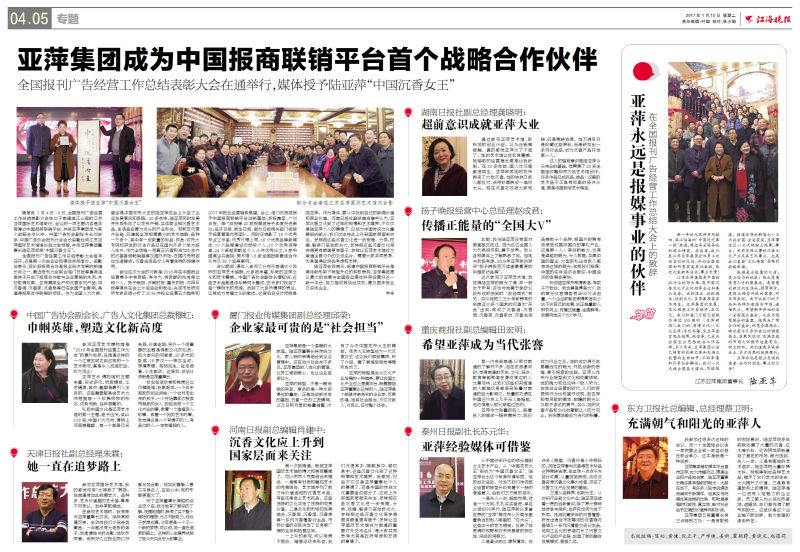 《江海晚报》亚萍集团成为中国报商联销平台首个战略合作伙伴