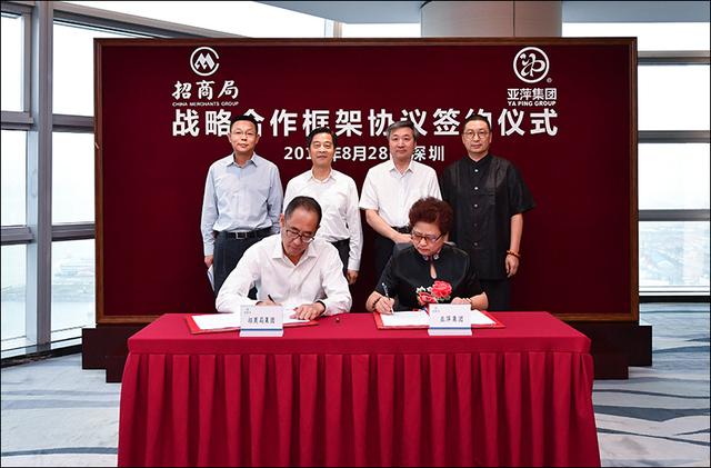 8月28日,恰逢七夕,招商局集团与亚萍集团喜结良缘,在深圳蛇口签署战略合作框架协议。集团董事长李建红,南通市政协主席黄巍东,集团总经理助理、招商金融董事长、CEO洪小源,江苏亚萍国际艺术馆馆长吕文举出席并见证签约仪式。集团副总经理孙承铭与亚萍集团董事长陆亚萍签署战略合作协议。仪式由洪小源主持。