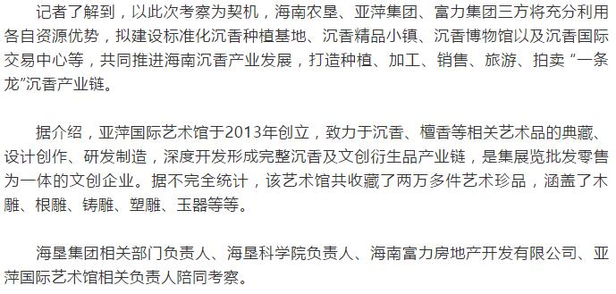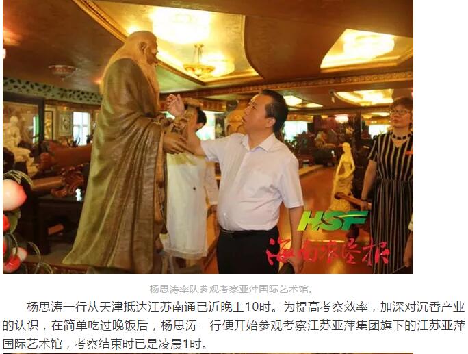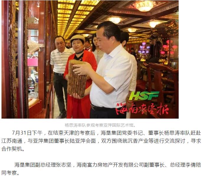 《海南日报》杨思涛考察江苏亚萍国际艺术馆 就沉香产业寻求合作契机