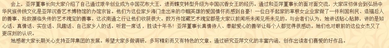 “亚萍杯专版好新闻暨体验亚萍征文颁奖会”在江苏亚萍国际沉香艺术博物馆成功召开