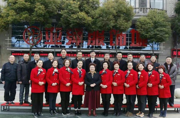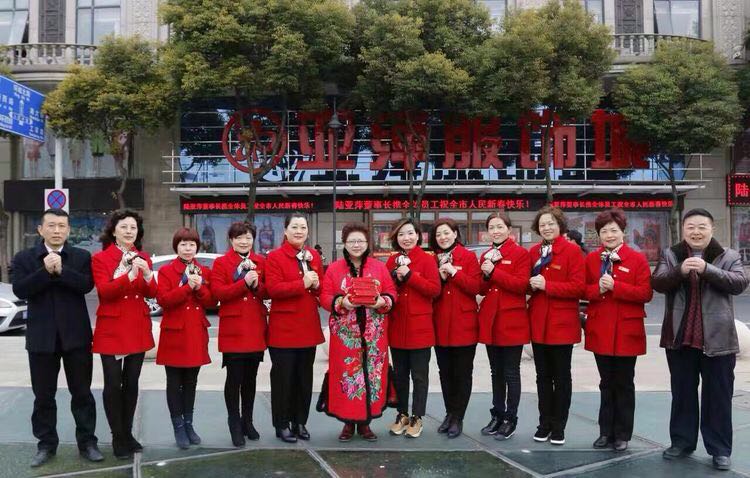 金鸡报晓迎新年, 大年初一早上,亚萍集团董事长陆亚萍就来到南通亚萍国际环西商场看望慰问全体员工,给大家拜年发红包!在万家团圆的日子里,各分公司所有员工和管理团队都自愿放弃休息,始终坚守在各自的岗位上,接待服务好每一位新老顾客!