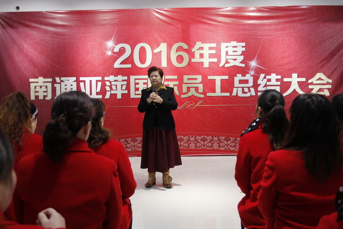 2017年2月7日早上,在南通亚萍国际环西店召开了南通亚萍国际2016年度员工总结大会,对过去一年中每个部门、每位人员的工作进行分析和点评。会上,员工们每个人不记名投票,分别写出自己心目中优秀的老总、优秀经理主管、优秀员工,以及平时表现较差的员工和管理人员。当场唱票并公布得票数,按照排名评选出优秀人员名单。整个过程按照公平、公正、公开的原则进行,是企业民主管理的又一次体现!陆亚萍董事长对今天的投票结果进行总结:总的来说,员工们是本着实事求是的态度参加此次评选的,不过也不排除一些管理人员平时工作认真,直言不讳,敢与不正之风作斗争,难免得罪人,董事长心里都很明白!所以董事长希望得票高的人员不要骄傲,虽然她们取得了一些成绩,但与亚萍董事长的要求还差距很大!得票少的人员也不要气馁,总结不足加以改正。陆亚萍董事长对新的一年工作提出了要求,指明了方向,确定了目标,希望所有员工在新的一年里再接再厉,为企业全心全意付出,争取比2016年做的更好!