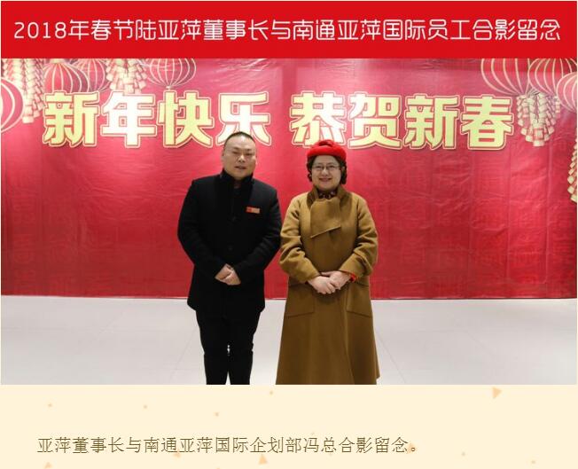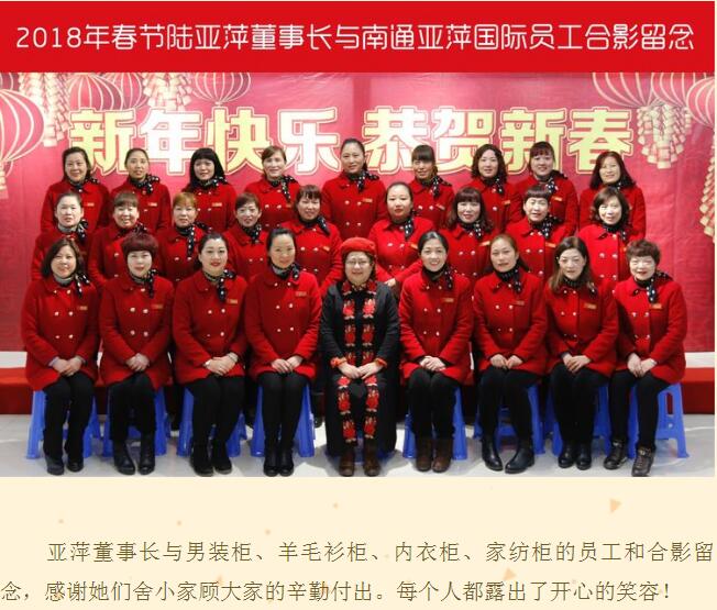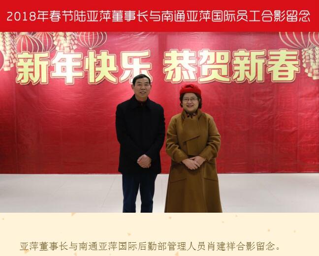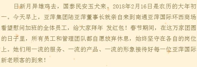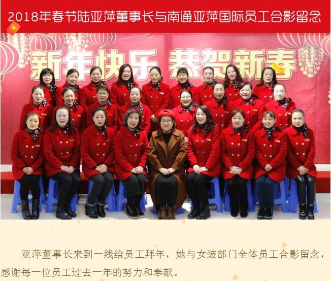 江苏亚萍集团陆亚萍董事长大年初一到南通分公司给全体员工拜年!