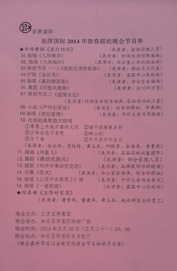 如东亚萍国际2013年度优秀员工表彰大会