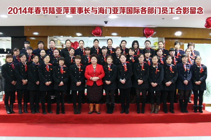 2014年春节陆亚萍董事长与海门亚萍国际员工合影留念