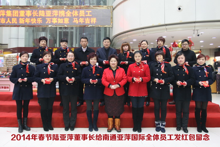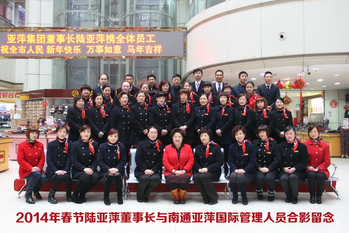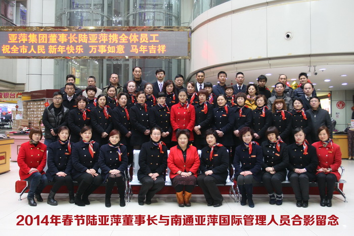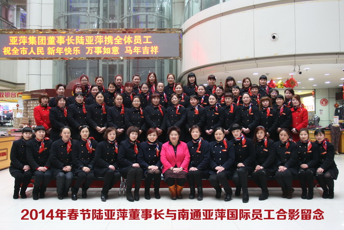 2014年春节陆亚萍董事长与南通亚萍国际员工合影留念