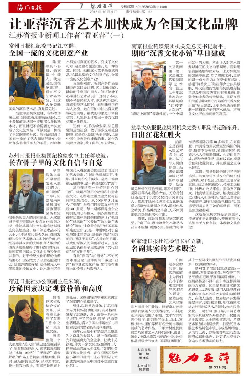 有此“自信”与“自觉”,不论沉香木雕还是“亚萍新闻”,或是“亚萍”名下其它文化产品,都可期有更强大的传播力与影响力。