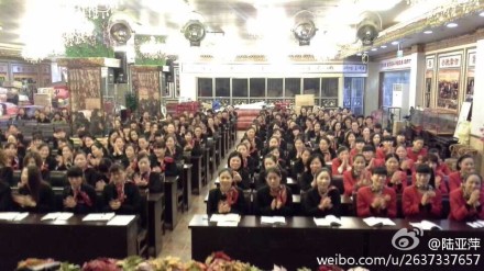 亚萍新闻:今天一早我给海门亚萍国际的全体员工和管理人员开会。看着员工们灿烂的笑脸我特别开心!会议中我用通俗易懂的方法传授销售的技能技巧, 鼓励员工要用更积极的态度对待工作,现在整个大环境都不是太好,但海门亚萍国际还是受到更多消费者的支持,我相信在大家的共同努力下亚萍的明天会更精彩。